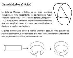 Esta página contiene hojas informativas con las actividades sobre la banda de Moebius trabajadas junto con el material necesario para ponerlas en el aula. |