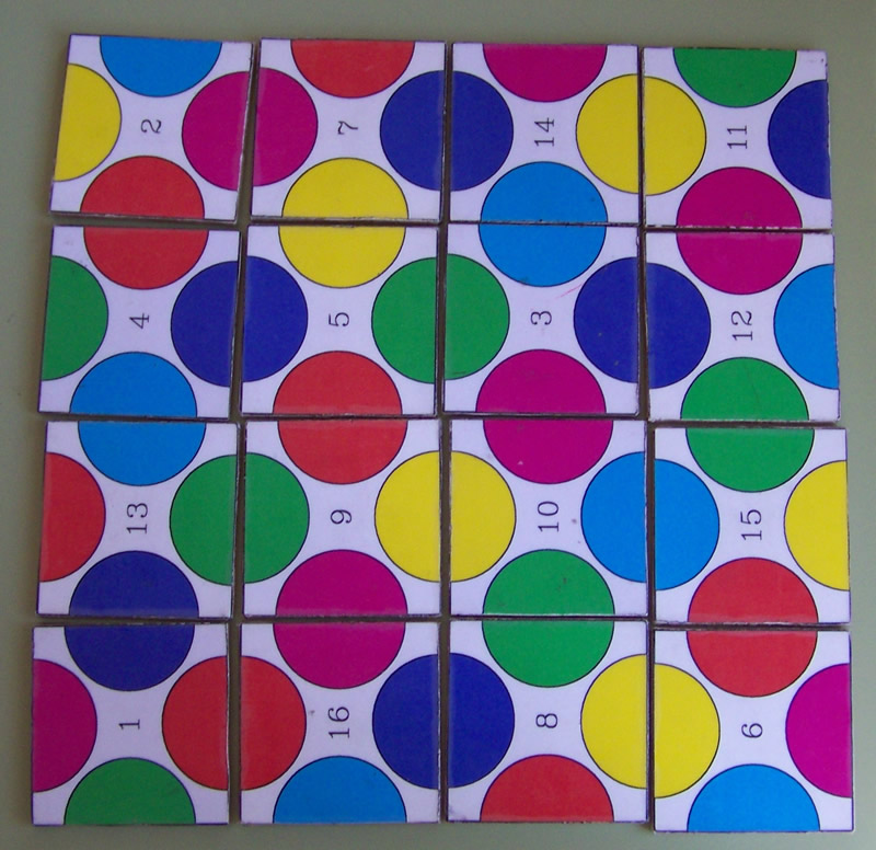 16 cuadrados ~ círculos de colores |